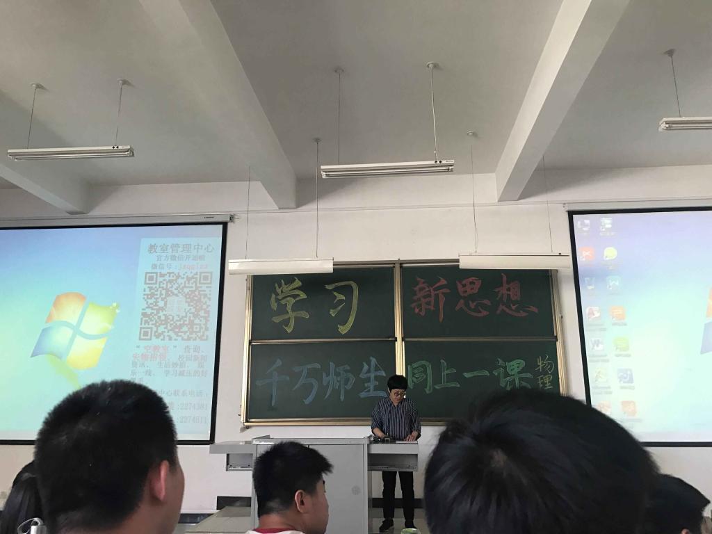 2018年6月12日下午在综B阶教301物理系开展了“学习新思想,千万师生同上一堂课”讲座,参加本次讲座的有物理系党总支副书记王秀芬老师和16级、17级物理系全体学生,本次讲座分两次完成,主讲教师为思政系白兴星老师。