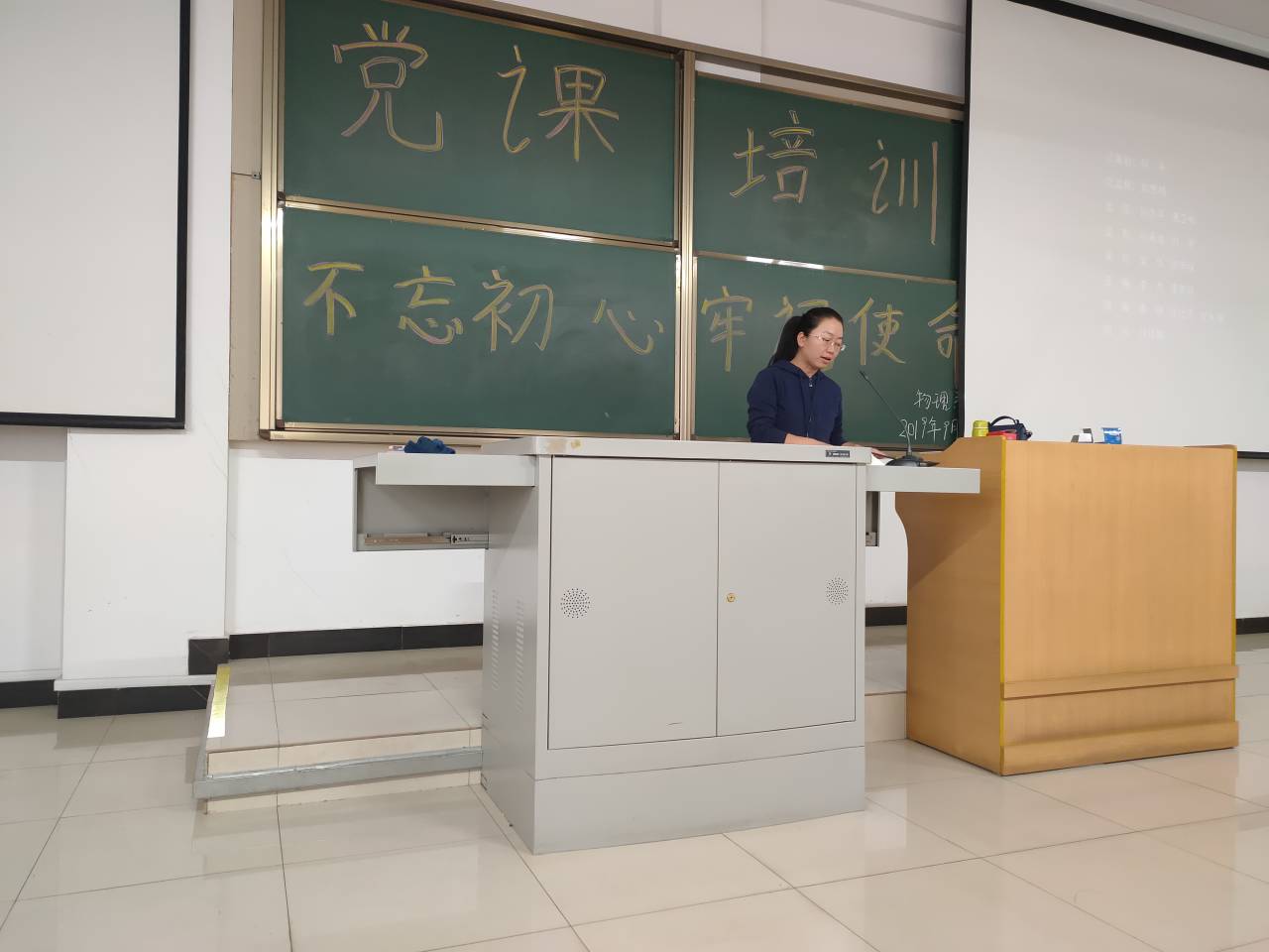 为了加强对发展对象和预备党员的思想教育工作,深化同学们对党的路线、方针和政策的理解,进一步提高发展对象和预备党的基础理论素养,我系于2019年9月24日下午2:30在综b阶104教室开展了本学期第一次党校培训课程——不忘初心、牢记使命。物理系学生支部书记杨艳担任本次党课的主讲。