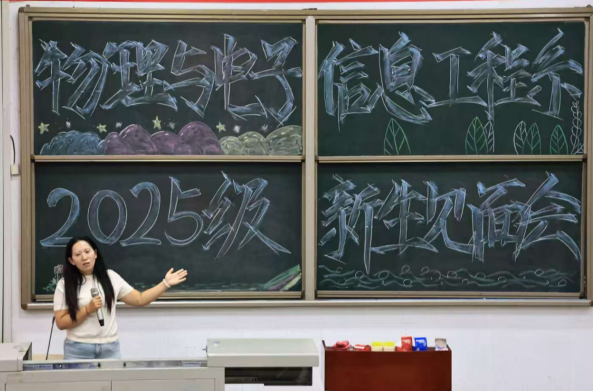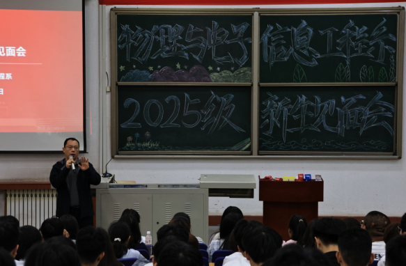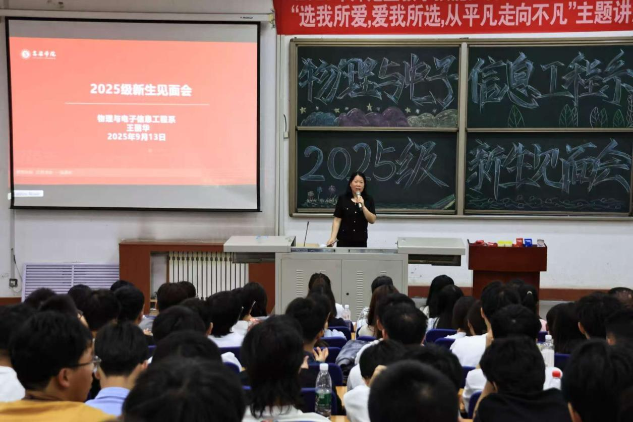 系主任王丽华上台发表热情洋溢的欢迎致辞。她首先代表tyc8722太阳集团全体师生,向怀揣梦想与憧憬的2025级新生致以最诚挚的欢迎。随后,王丽华主任围绕系部核心情况展开详细介绍:从系领导班子成员的分工与职责,到系部多年来的发展历程与学科积淀;从覆盖物理、电子信息等领域的专业设置体系,到由骨干教师、学科带头人组成的优质教师队伍;再到近年来在人才培养、科研创新、就业质量等方面取得的育人成效,她以清晰的逻辑、生动的表述,将系部的基本情况一一呈现。