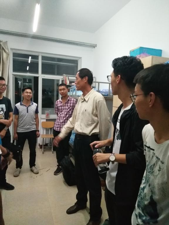 2017年9月17号下午七点,物理系党支部书记靳建斌、党支部副书记王秀芬、李彩龙老师、李丽老师、蔡文超老师、史金梅老师及学生会部分成员,辅导员的陪同下赶到新生宿舍视察我系新生的住宿情况。