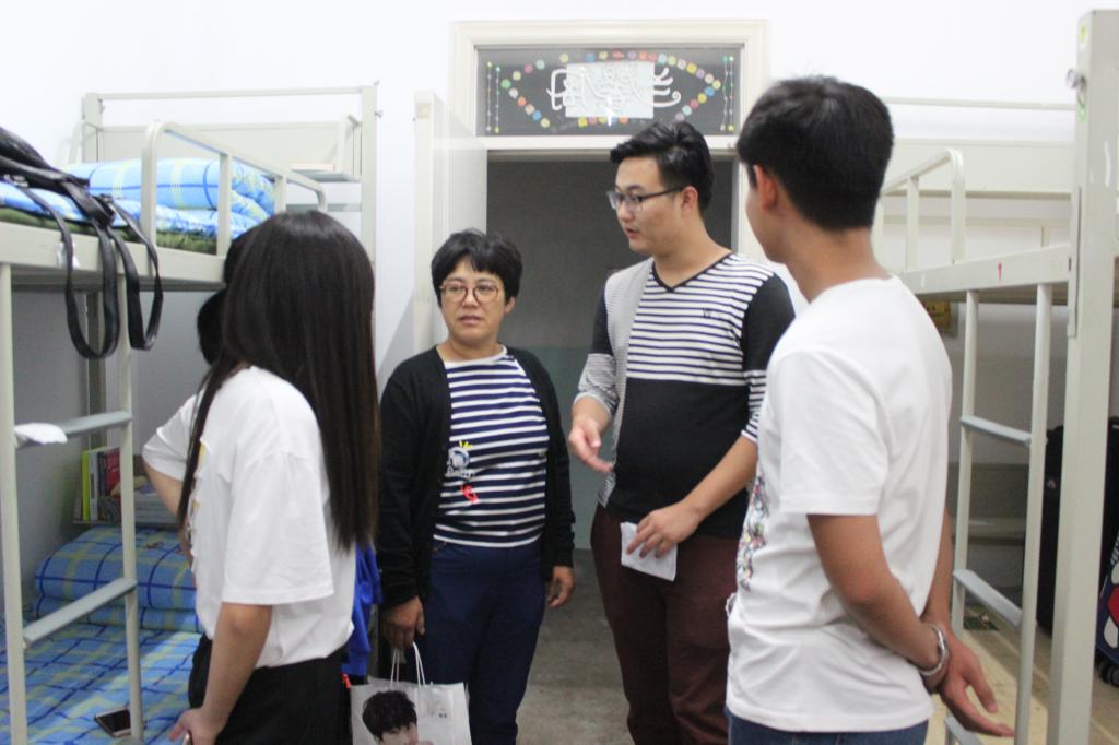 进入到宿舍,我系领导亲切询问了新生的住宿情况,并亲自察看了宿舍的安全设施。李彩龙老师还悉心向同学们提出了几项具体的安全防范措施。靳书记一再叮嘱同学们要学会独立自主,有什么问题尽量自己解决,尽快适应大学生活。领导老师和蔼关切的态度和幽默风趣的谈吐使得现场气氛轻松融洽,大家畅所欲言,师生充分交流互动。最后,靳书记对我院新生给予了充分肯定,希望他们在今后的大学生活中努力学习,继续将我院的优良作风发扬光大。