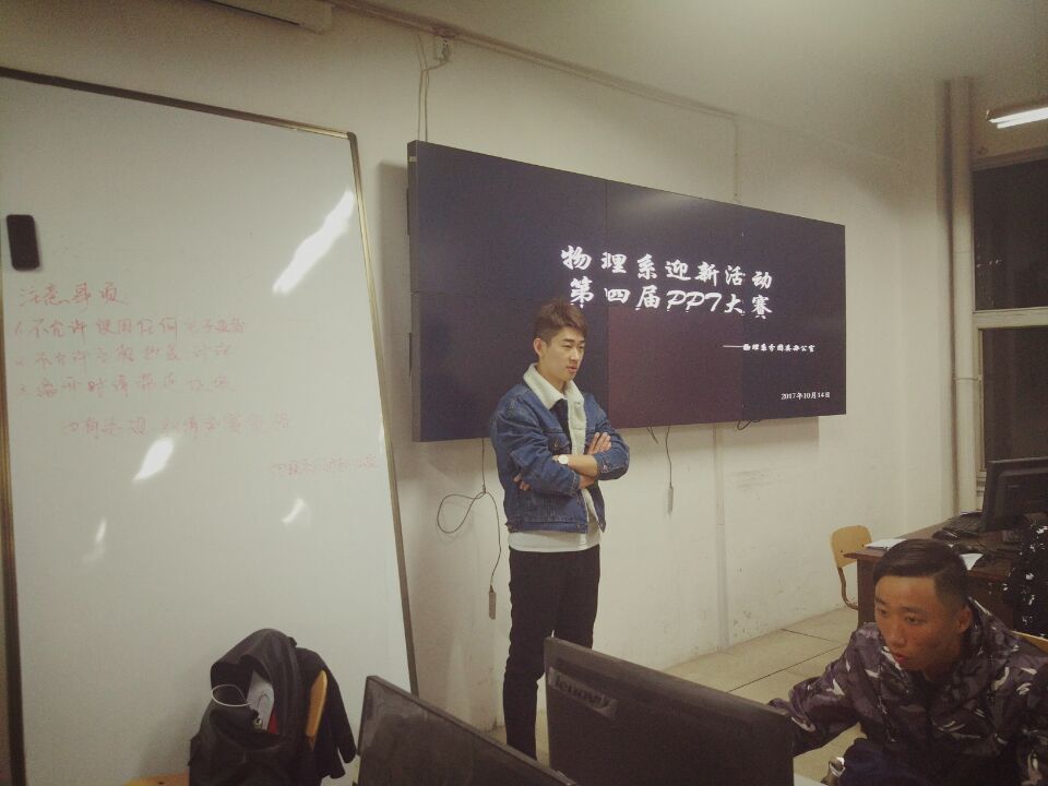 为丰富同学们的课余生活,提高同学们的综合素质,配合学校工作进行宣传动员,同时发掘人才,为热爱制作ppt的同学提供一个交流的平台,10月14日晚7点30于实验楼2-311,物理系分团委学生会办公室举办PPT大赛——初赛。参加比赛的为物理系2017级新生。
