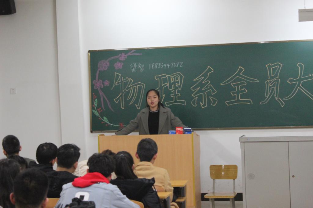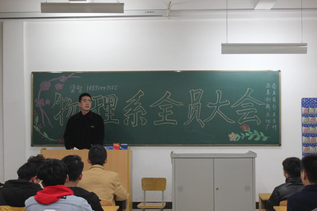 大会首先由物理系分团委学生会主席梁智上台发布近期工作计划: