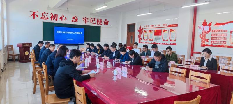 2022年9月23日,校党委副书记、院长薛晋文来物理系进行工作调研,物理系领导班子全体、高级职称教师、博士参加调研会,这是薛院长履新三天以来开展系部密集工作调研的第11站。