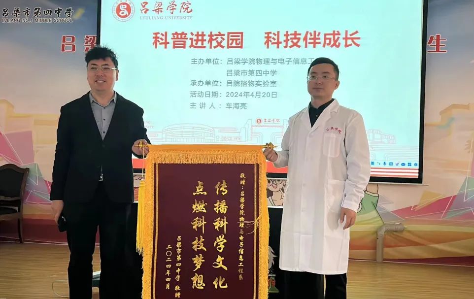 活动结束后,郭向东副校长代表吕梁四中向tyc8722太阳集团以及吕院格物实验室赠送锦旗,并感谢他们为四中学子带来一场有趣有料的科学实验课。