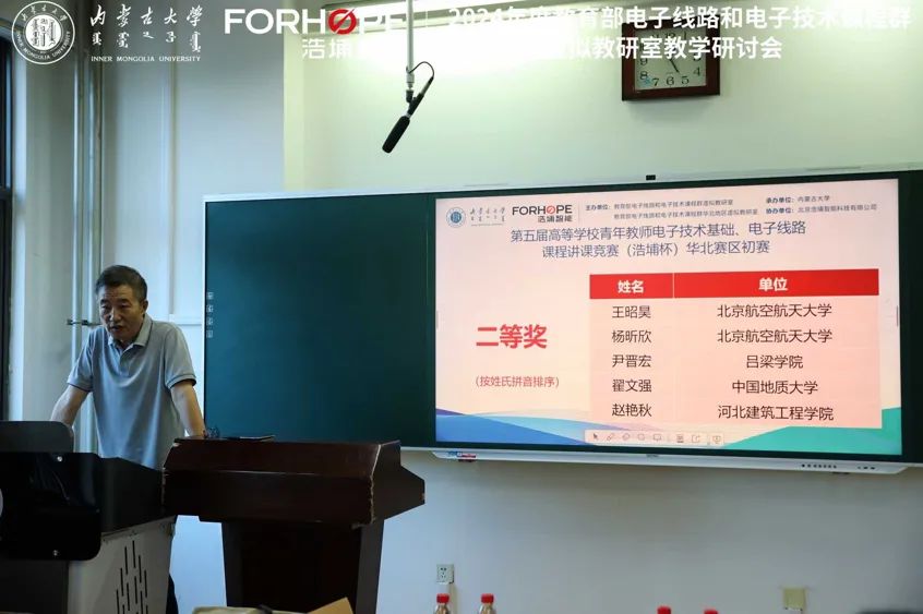 8月12日-15日,2024年度教育部电子线路和电子技术课程群华北地区虚拟教研室教学研讨会暨第五届全国高等学校青年教师电子技术基础、电子线路课程授课竞赛(浩埔杯)华北赛区初赛在内蒙古大学举行。大赛汇聚了华北五省的30多所包括北京邮电大学、北京航空航天大学、天津大学在内等双一流高校推荐的优秀教师们参加了本次比赛和研讨,最终25名教师分获华北区初赛一、二等奖。