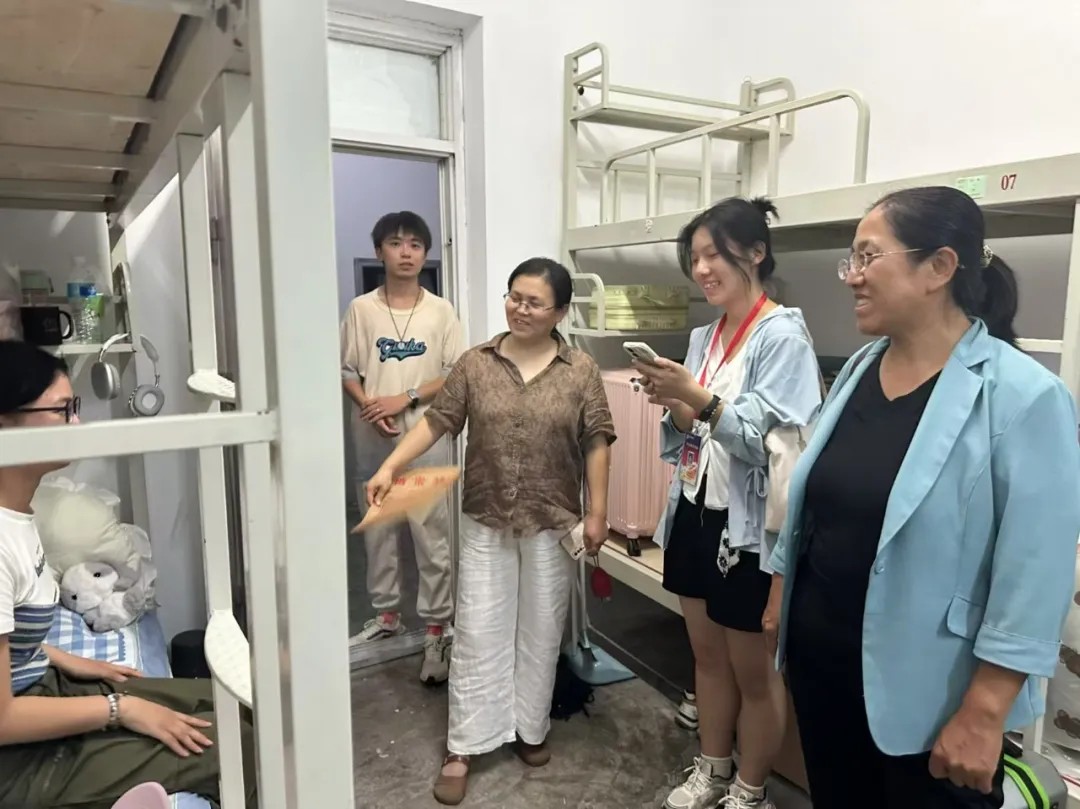 报到当晚,为深入了解学院普高新生住宿情况和生活学习需求,引导学生尽快适应新的校园环境,tyc8722太阳集团领导班子和新生辅导员、学长辅导员走进新生宿舍,为同学们带去关怀与问候。走访过程中,系领导对同学们表达了亲切的问候,询问新生来校后的生活和适应情况,详细了解同学们对自己大学的学习、生活规划,鼓励同学们要以积极的心态迎接新的校园生活,努力学习,有困难及时向老师们反映,鼓励大家积极适应新环境、融入新集体。