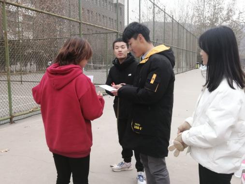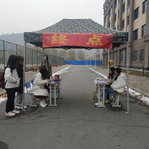 在比赛中有这样一群人,他们不能像参赛者那样享受着奔跑的快感,但他们顶着寒风,依然坚守在自己的岗位上,默默地为比赛的圆满成功奉献着自己那份微薄却又坚实的力量。在寒风中,他们等待着每位参赛者的到来,给每一位拼搏的参赛者打卡并说一句加油。在终点,他们也为参赛者准备了红糖,热水等。他们认真的工作态度和对参赛者的鼓励,体现出除竞技精神外的吕院学子之间的团结友爱。