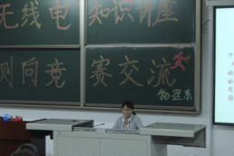 接下来王局长就无线电在实际工作方面的应用作了讲解。鼓励同学们多去了解,学习无线电。介绍了他们的工作任务是维护无线电秩序,防止他人在重要考试等方面利用无线电作弊。还介绍了无线电在生活,军事等方面的应用。而后王秀芬副书记为同学们介绍了无线电测向队成员。队员许飞飞,袁卓莉作为代表作了讲话。许飞飞介绍了无线电测向比赛,就其细节分析到位,强调了熟能生巧的重要性。希望同学们加入到无线电测向队的队伍中。袁卓莉就最近几次比赛取得的成绩做了总结,期待在今后的比赛中取得更好的成绩。