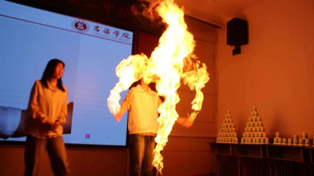 活动中,一系列精心设计的科学实验吸引了在场学生的目光,包括掌中火焰、火龙卷、瓶中火焰、马德堡半球实验、静电章鱼、空气炮等涉及热学、电学以及空气动力学相关科学实验,通过图文结合、通俗易懂的讲解方式,将科学实验背后蕴含的科学知识和科学原理呈现给同学们。通过互动、提问的方式让同学们体验科学实验的乐趣,激发学生对科学的探索欲和求知欲。