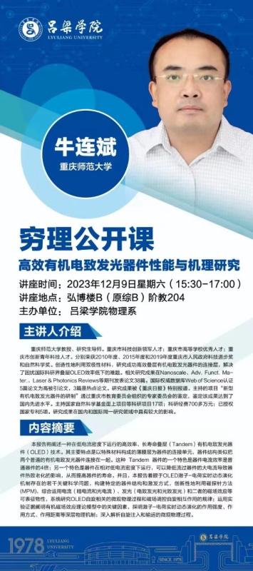 讲座主题:高效有机电致发光器件性能与机理研究