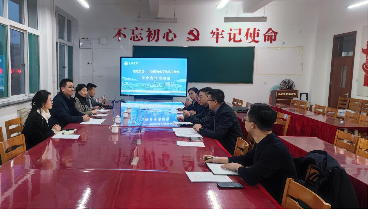 2025年3月13日,杰成集团总裁乔聪玲、总经理韩瑞一行四人,来到太阳集团城娱8722物电系,就校企合作事项举行洽谈会。招生就业部处长薛文出席,物电系领导班子全体成员参会。