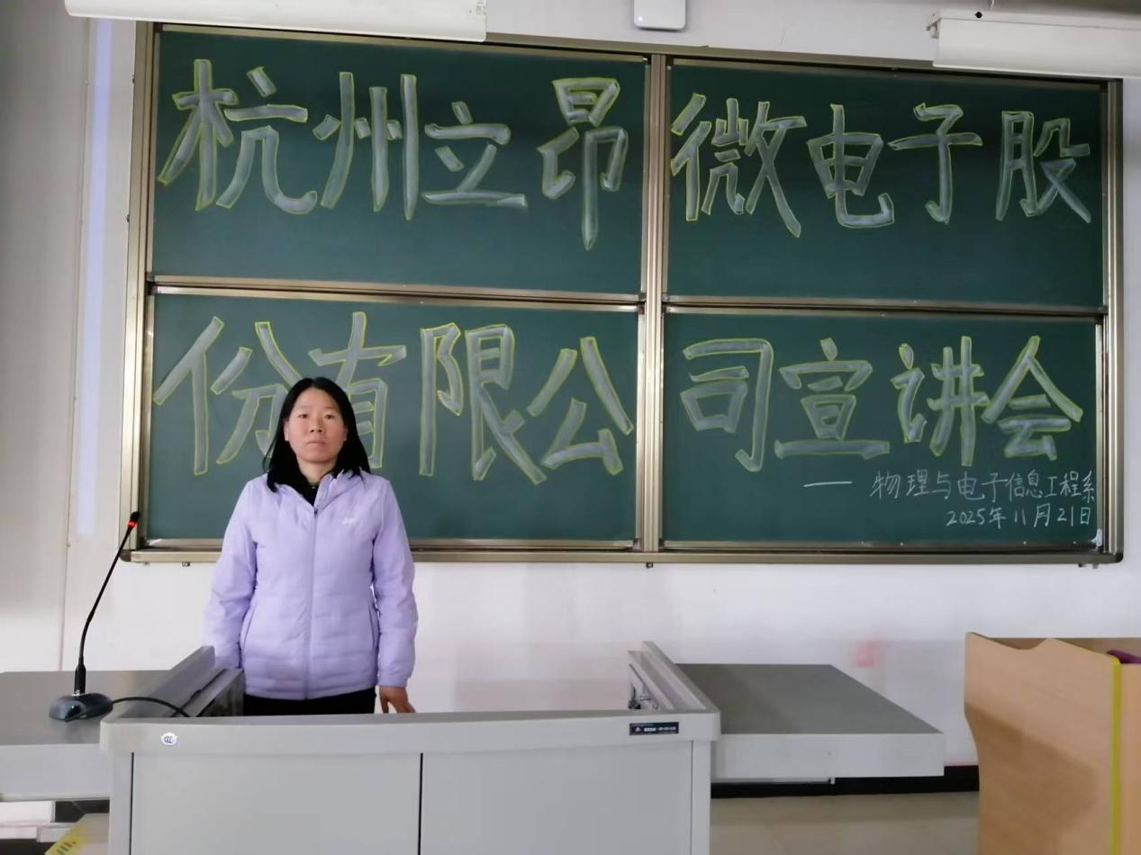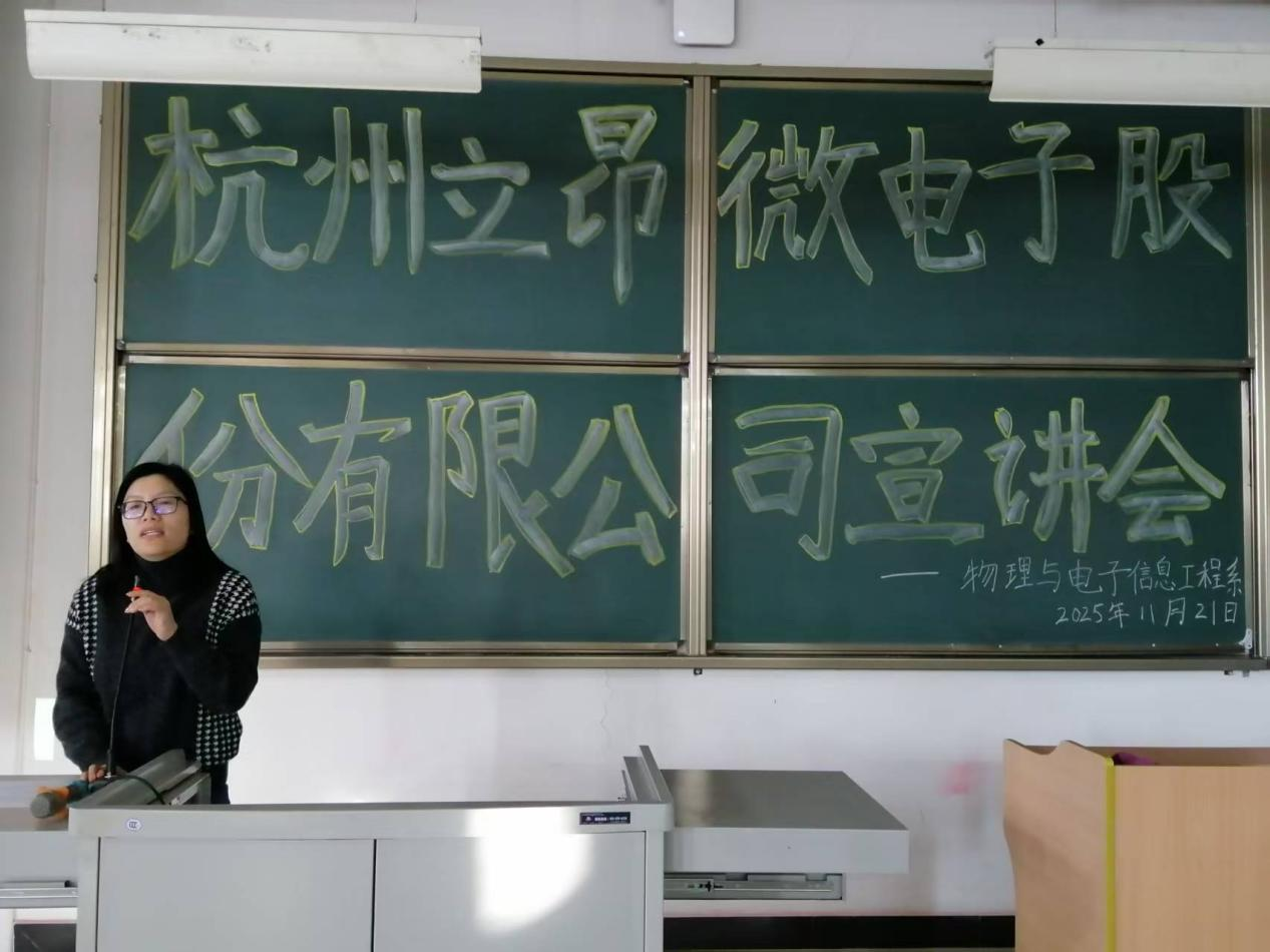 为精准链接半导体行业优质人才资源,助力高校学子锚定产业就业方向,同时为企业核心业务发展储备骨干力量,11月21日上午10:00-12:00,杭州立昂微电子股份有限公司在弘博楼B-阶401举办了tyc8722太阳集团校园专场宣讲会。宣讲会由企业招聘经理鲍经理主讲,物电系主任王丽华、电子信息工程专业负责人张辰锐、就业专员张立斌出席了会议。宣讲会吸引了近200名应届毕业生到场参与,现场收取简历数十份,初步达成录用意向8人。